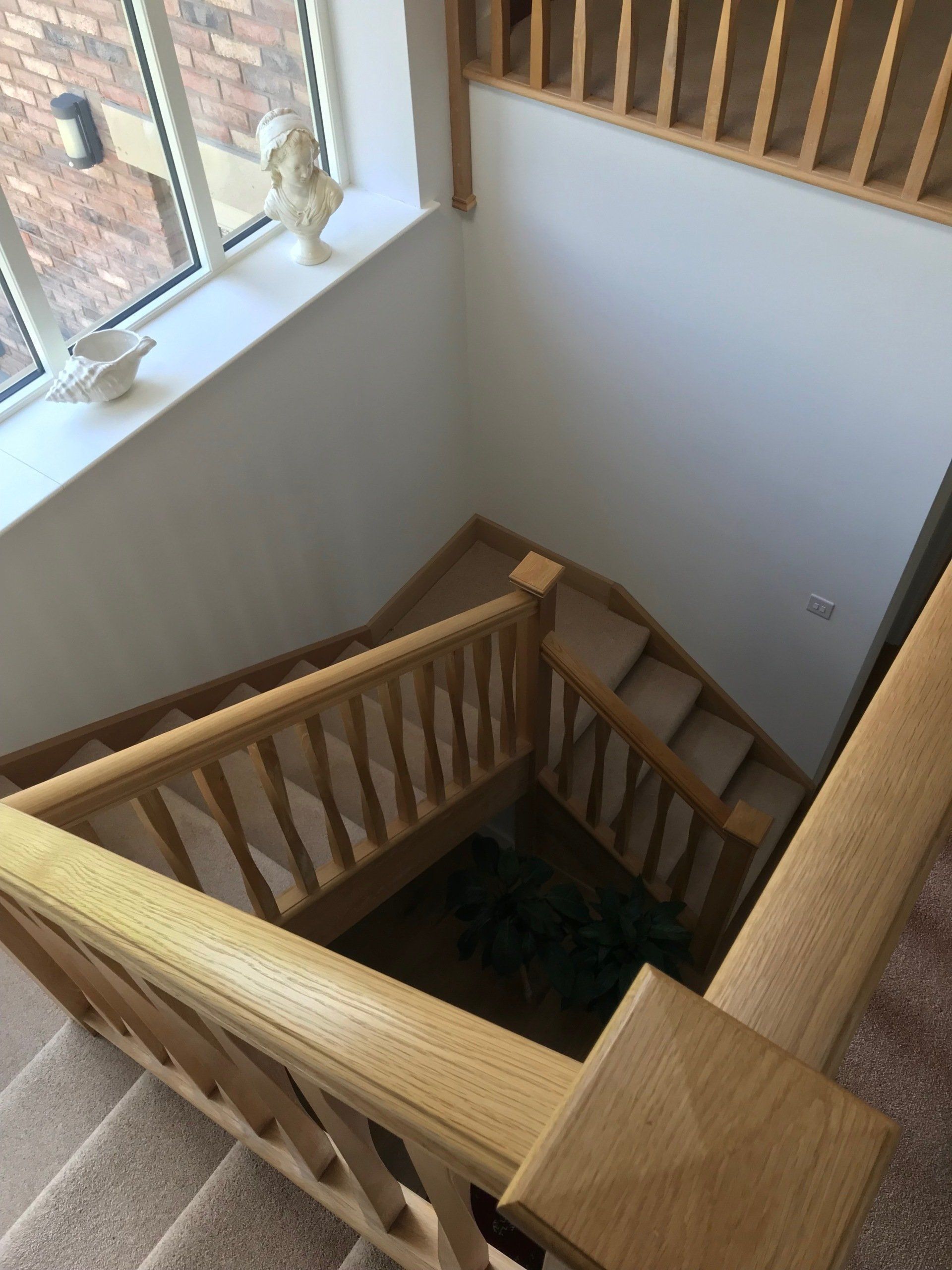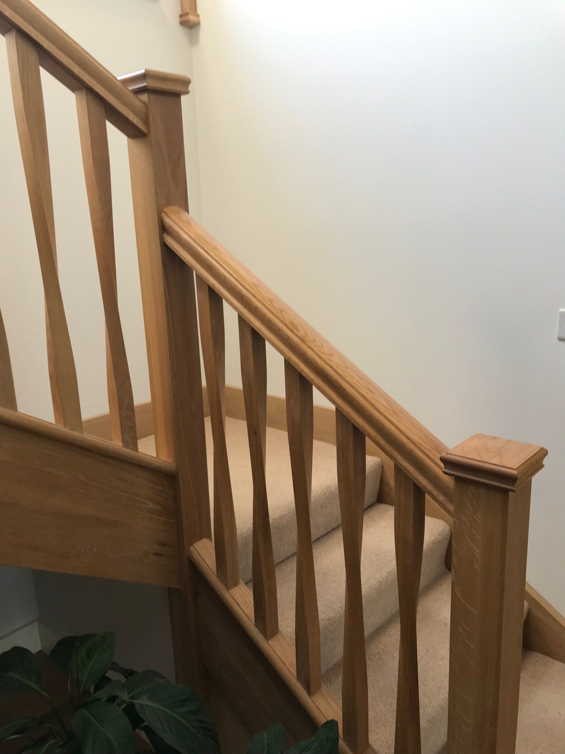 This stunning oak stair case is the first thing that greets the customers guests when entering the property. Finished in Osmo Oil, it really does enhance the natural beauty of the Oak, but the main talking point of this stair case is the bespoke spindles that give such a great illusion when up close.